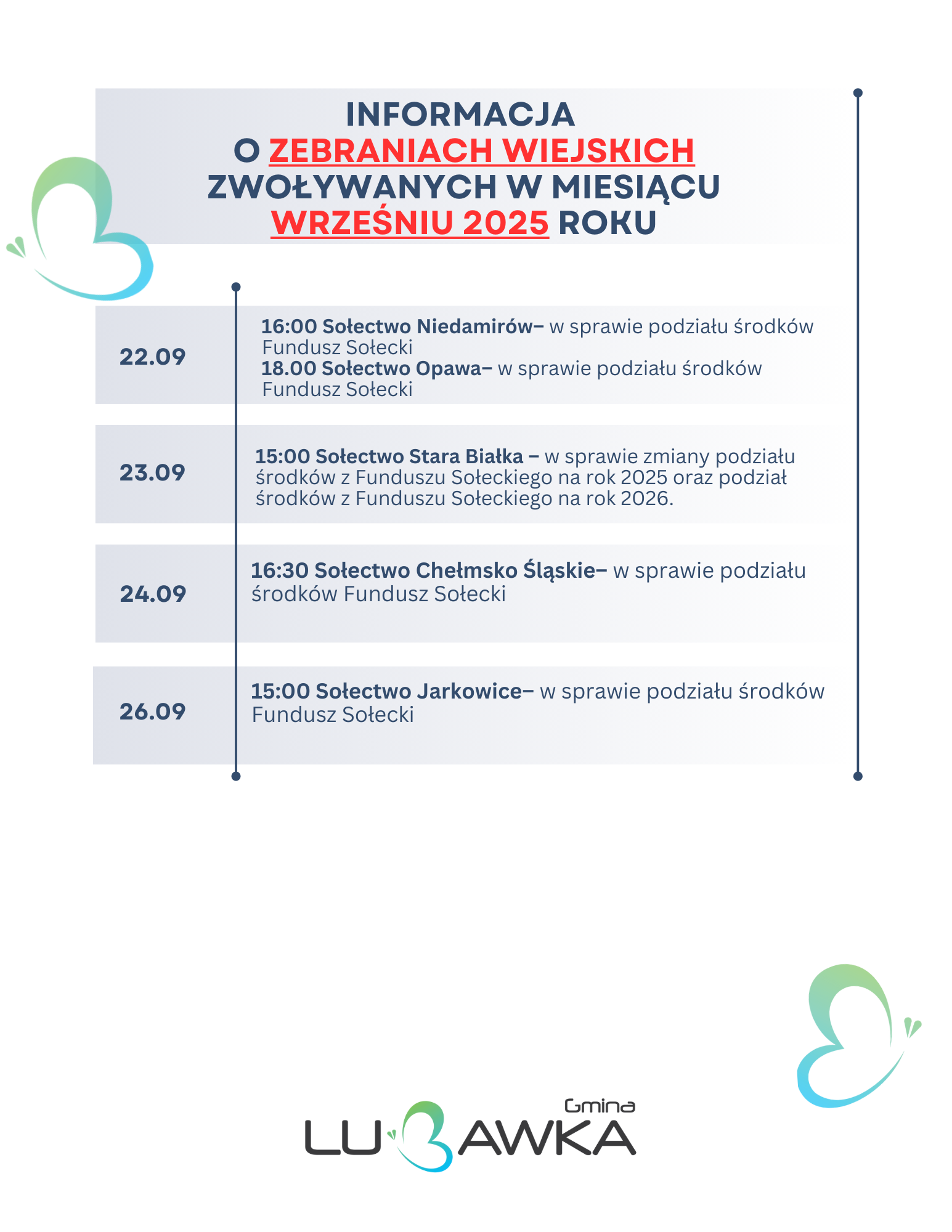 Informacja o zebraniach wiejskich zwoływanych w miesiącu wrześniu 2025 roku