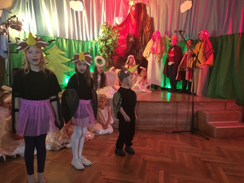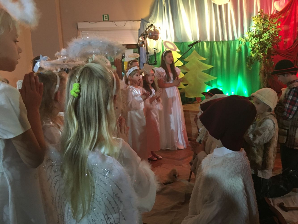 Na scenie zaprezentowały się dzieci z zespołu Kwiatuszki Lnu oraz Zespół Zgoda. Wydarzenie zakończyła wspólna, symboliczna Wigilia.
